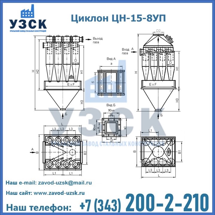 Завод «УЗСК» в Коломне предлагает большой выбор циклонов ЦН-15-500×8УП и прочих устройств, полностью укомплектованных и готовых к эксплуатации. Мы гарантируем соответствие оборудования всем требованиям ГОСТ и ТУ, износостойкость и высокую производительность предлагаемого оборудования. Уральский Завод Стальных Конструкций изготавливает и продает надежное, эффективное и производительное оборудование, имеющее длительную гарантию и большой эксплуатационный ресурс. Если требуется изготовить циклон нестандартных размеров, то такой вариант выполнения заказа тоже предусмотрен, так как предприятие имеет собственные производственные площади и надежных поставщиков. На все поставляемое или производимое оборудование имеются чертежи и прочая техническая документация. Заказать и купить циклоны или прочее оборудование высокого качества и по доступной цене можно через наш сайт или по указанному в разделе «Контакты» телефону.